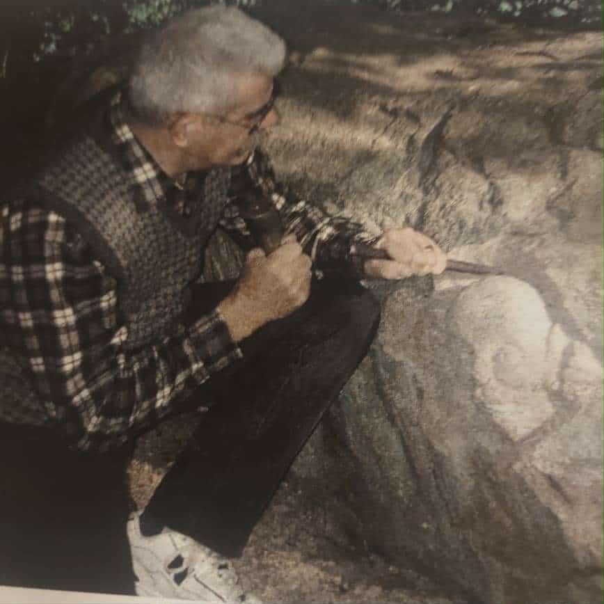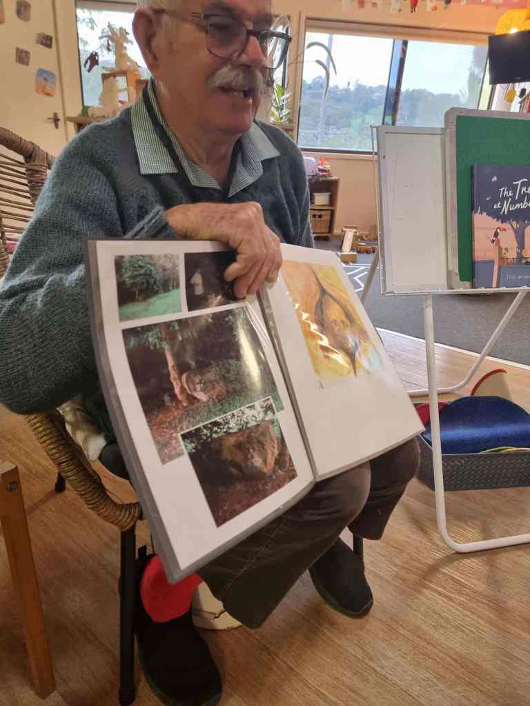 The next day, I received a phone call from Gary, a local elderly man who was the artist behind Goblin Rock and he had been living his life only 2 streets away from our preschool for the last 25 years. He was thrilled that his work had sparked such joy for the children and eagerly agreed to visit our preschool in a few days’ time and in the meantime, he was going to email me a photo that he guessed might have been about 20years old, of himself creating the goblin.